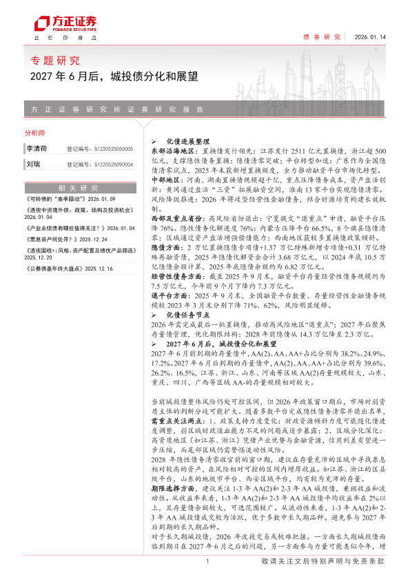 【方正证券】【202601】2027年6月后,城投债分化和展望-14页