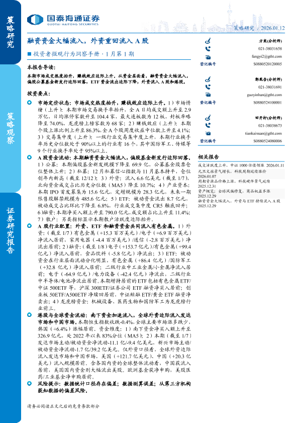 【国泰海通证券】【202601】融资资金大幅流入,外资重回流入A股-31页