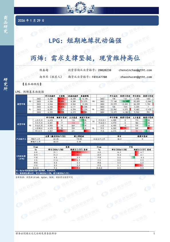 【国泰君安期货】【202601】LPG:短期地缘扰动偏强 丙烯:需求支撑坚挺,现货维持高位-4页
