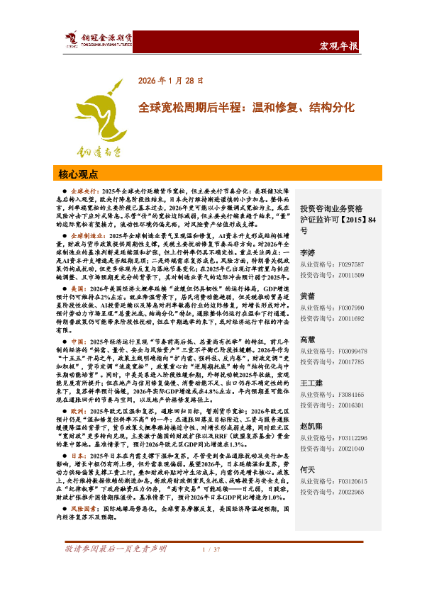【铜冠金源期货】【202601】全球宽松周期后半程:温和修复、结构分化-37页