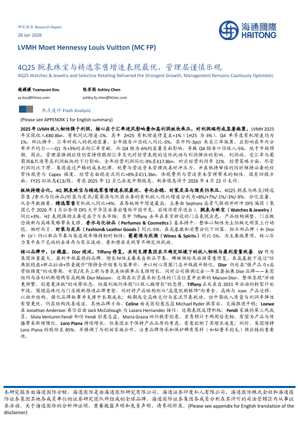 【海通国际】【202601】4Q25腕表珠宝与精选零售增速表现最优,管理层谨慎乐观-10页
