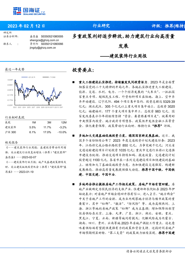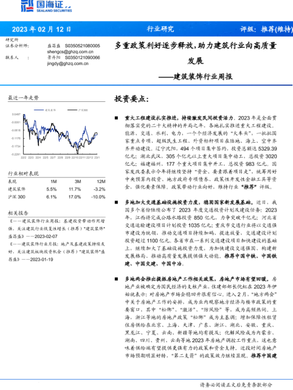 【国海证券】【20230212】建筑装饰行业周报:多重政策利好逐步释放,助力建筑行业向高质量发展-14页
