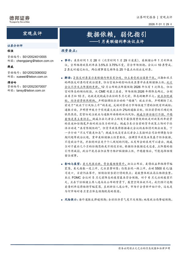 【德邦证券】【202401】数据依赖,弱化指引——1月美联储利率决议点评-5页