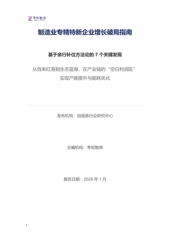 【自指余行论研究中心&专知智库】【202601】制造业专精特新企业增长破局指南——基于余行补位方法论的7个关键发现-73页