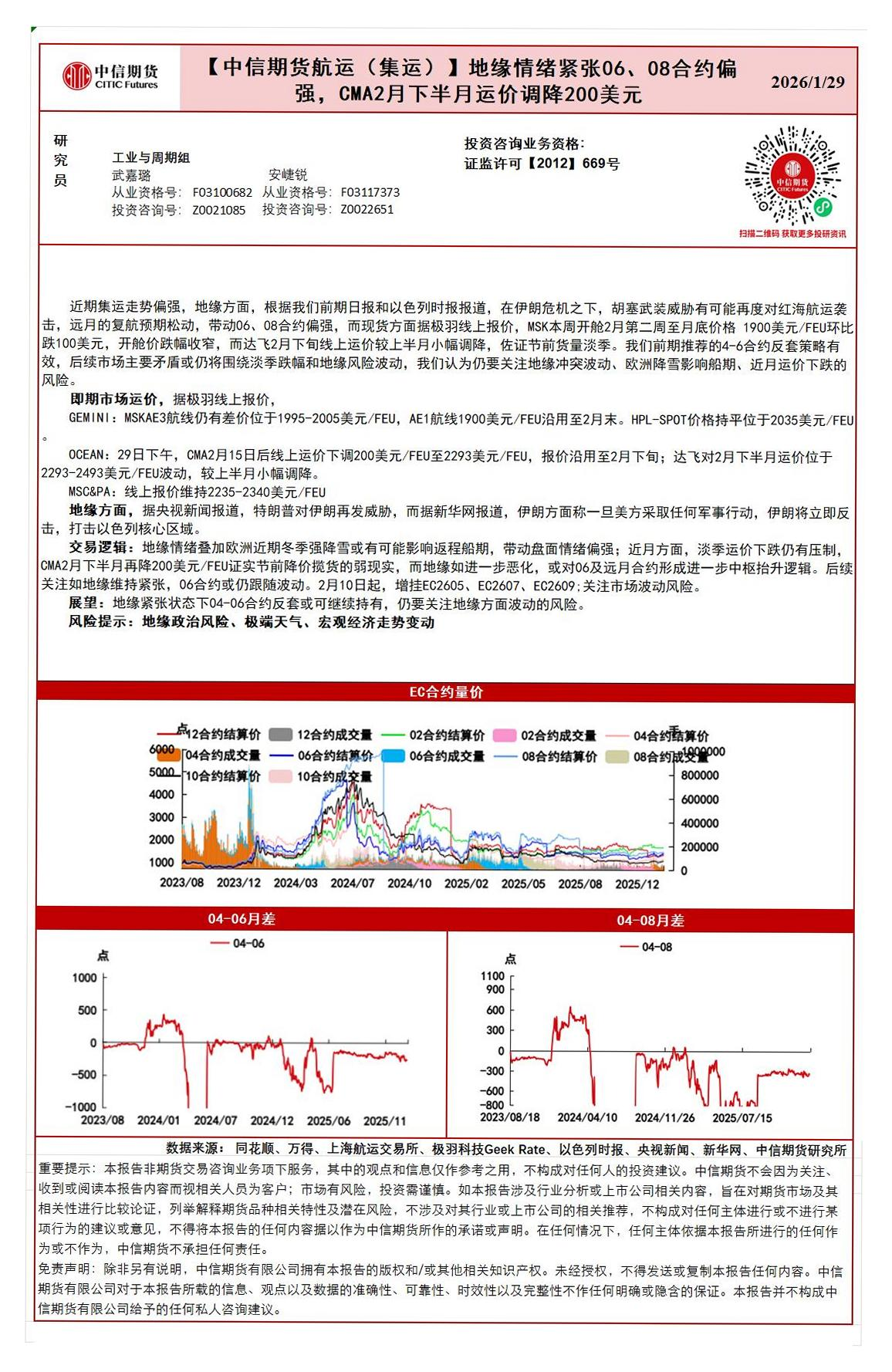 【中信期货】【202601】航运(集运)地缘情绪紧张06_08合约偏强_CMA2月下半月运价调降200美元-1页