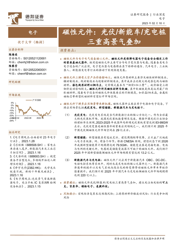 【德邦证券】【20230210】德邦证券:电子行业深度-磁性元件-光伏新能车充电桩三重高景气叠加-26页