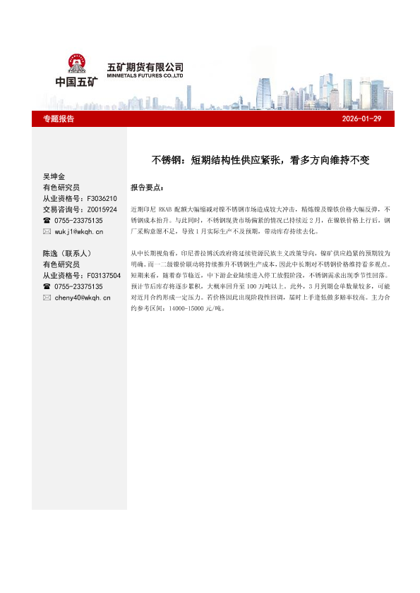 【五矿期货】【2025】不锈钢_短期结构性供应紧张_看多方向维持不变-6页