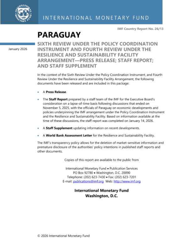 【国际货币基金组织】【202601】Paraguay Sixth Review Under the Policy Coordination Instrument, and Fourth Review Under the Resilience and Sustainability Facility Arrangement-Press Release; Staff Report; and Staff Supplement-73页