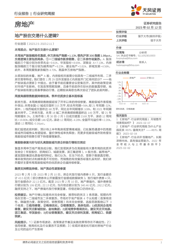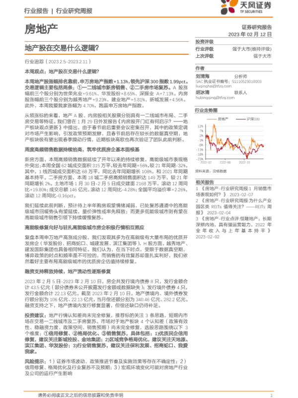 【天风证券】【20230212】房地产行业研究周报:地产股在交易什么逻辑?-16页