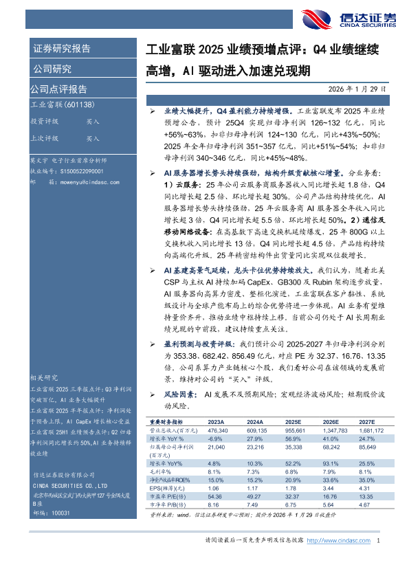 【信达证券】【2026】工业富联2025业绩预增点评:Q4业绩继续高增,AI驱动进入加速兑现期-4页