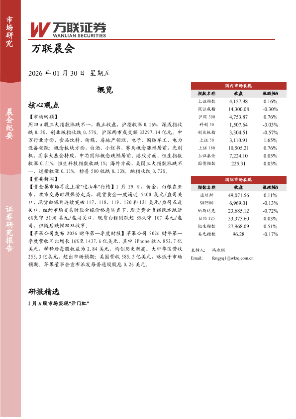 A股市场 苹果财报 新质生产力 政策解读 贵金属行情