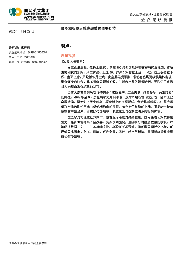 【英大证券】【202601】金点策略晨报:顺周期板块后续表现或仍值得期待-4页