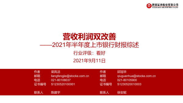 【浙商证券】【20210911】2021年半年度上市银行业财报综述:营收利润双改善-17页