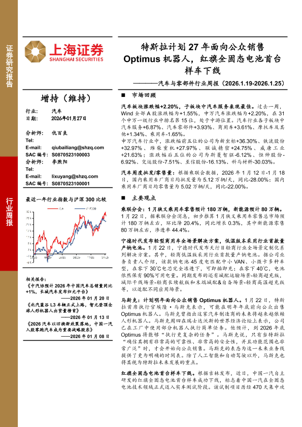 【上海证券】【202601】2026-01-29_上海证券_汽车与零部件行业周报:特斯拉计划27年面向公众销售Optimus机器人,红旗全固态电池首台样车下线.pdf-3页