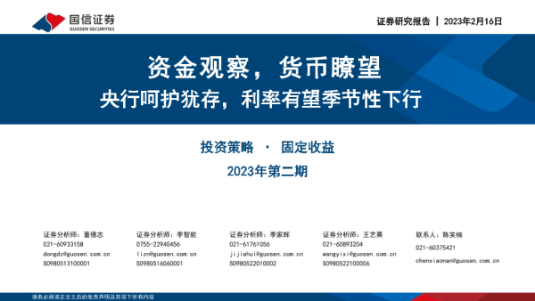 【国信证券】【20230216】投资策略·固定收益2023年第二期:资金观察,货币瞭望,央行呵护犹存,利率有望季节性下行-28页