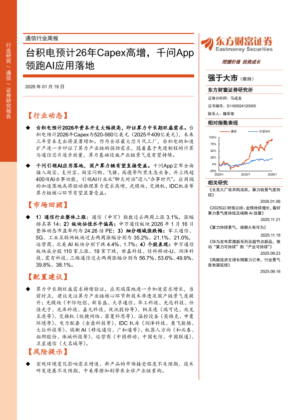 【东方财富证券】【202601】台积电预计26年Capex高增,千问App领跑AI应用落地-13页