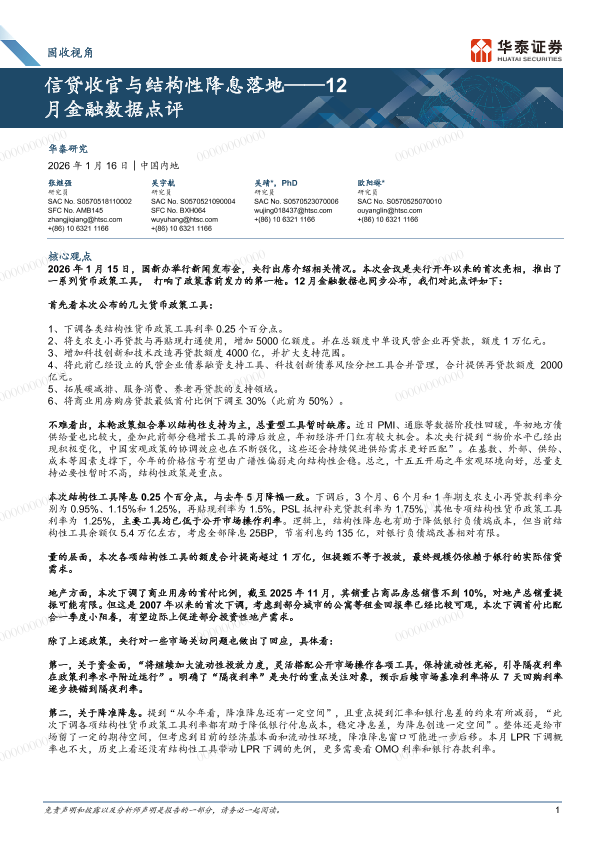 【华泰证券】【202601】信贷收官与结构性降息落地——12月金融数据点评-10页