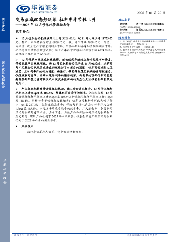 【华福证券】【202601】交易盘减配态势延续杠杆率季节性上升——2025年12月债券托管数据点评-11页