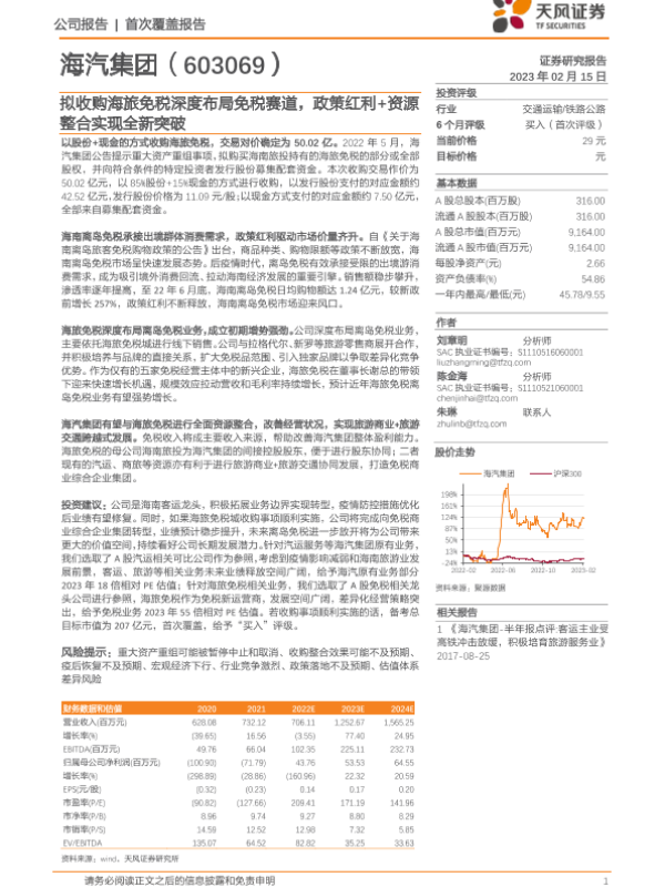 【天风证券】【20230215】拟收购海旅免税深度布局免税赛道,政策红利+资源整合实现全新突破-34页