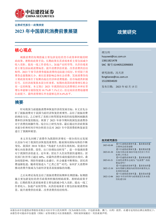 【中信建投证券】【20230215】2023年中国居民消费前景展望-29页