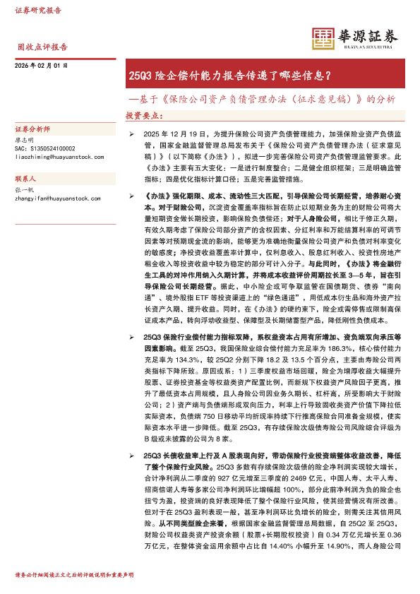 【华源证券】【202602】25Q3险企偿付能力报告传递了哪些信息?—基于《保险公司资产负债管理办法(征求意见稿)》的分析-11页