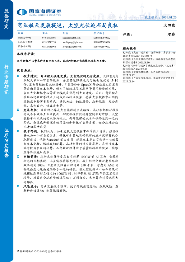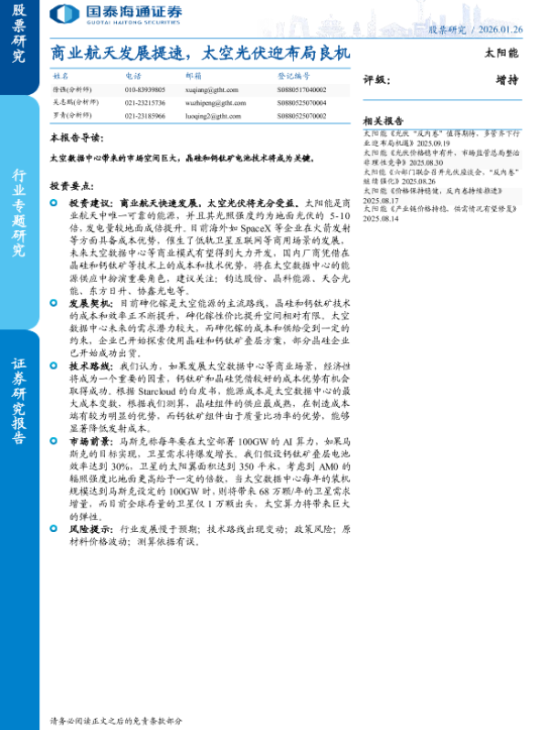 【国泰海通证券】【202601】商业航天发展提速,太空光伏迎布局良机-30页