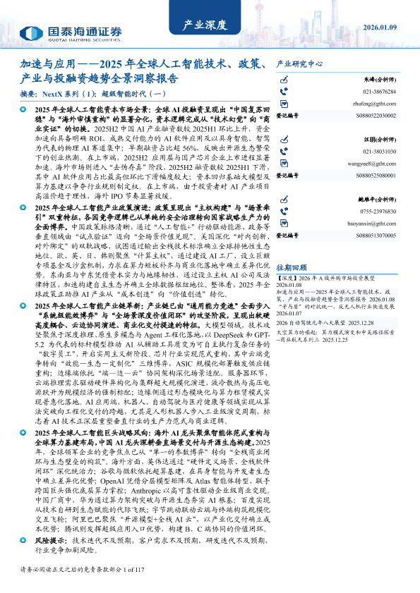 【国泰海通证券研究所】【202501】加速与应用——2025年全球人工智能技术、政策、产业与投融资趋势全景洞察报告-117页