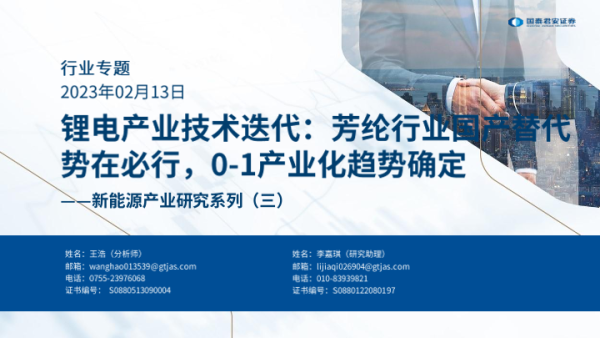 【国泰君安证券】【20230213】新能源产业研究系列(三):锂电产业技术迭代:芳纶行业国产替代势在必行,0-1产业化趋势确定-17页