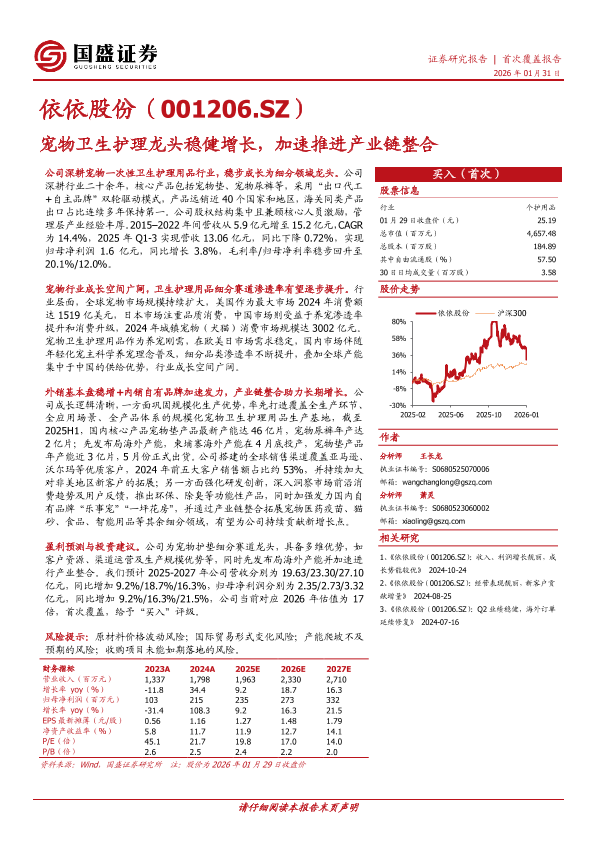 【国盛证券】【202601】宠物卫生护理龙头稳健增长,加速推进产业链整合-26页