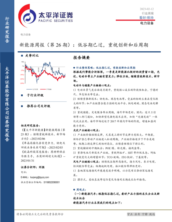 【太平洋证券】【20230212】新能源周报(第26期):低谷期已过,重视创新和后周期-30页