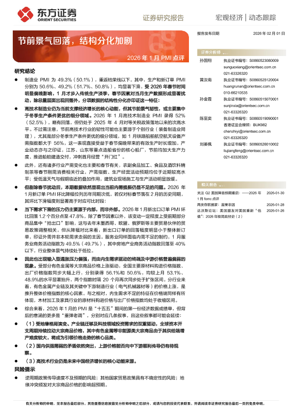 【东方证券】【202602】2026年1月PMI点评:节前景气回落,结构分化加剧-4页