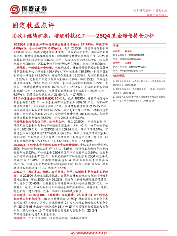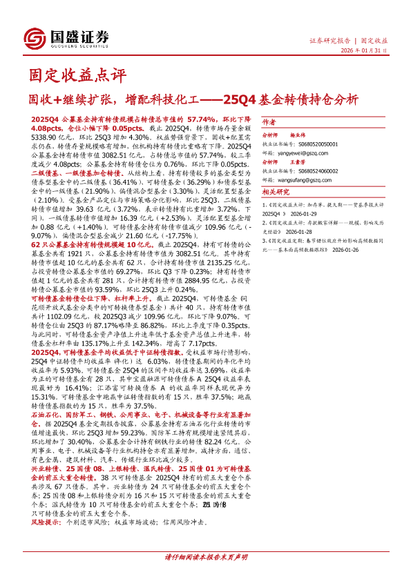 【国盛证券】【2026】固收+继续扩张,增配科技化工——25Q4基金转债持仓分析-14页