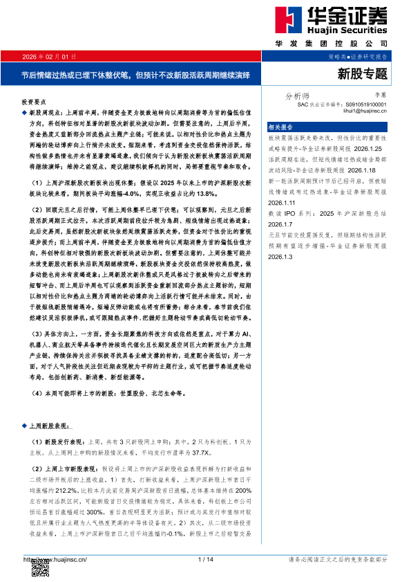 【华金证券】【202602】节后情绪过热或已埋下休整伏笔,但预计不改新股活跃周期继续演绎-14页