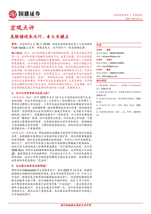 【国盛证券】【202601】美联储迎来沃什,4大关键点-6页