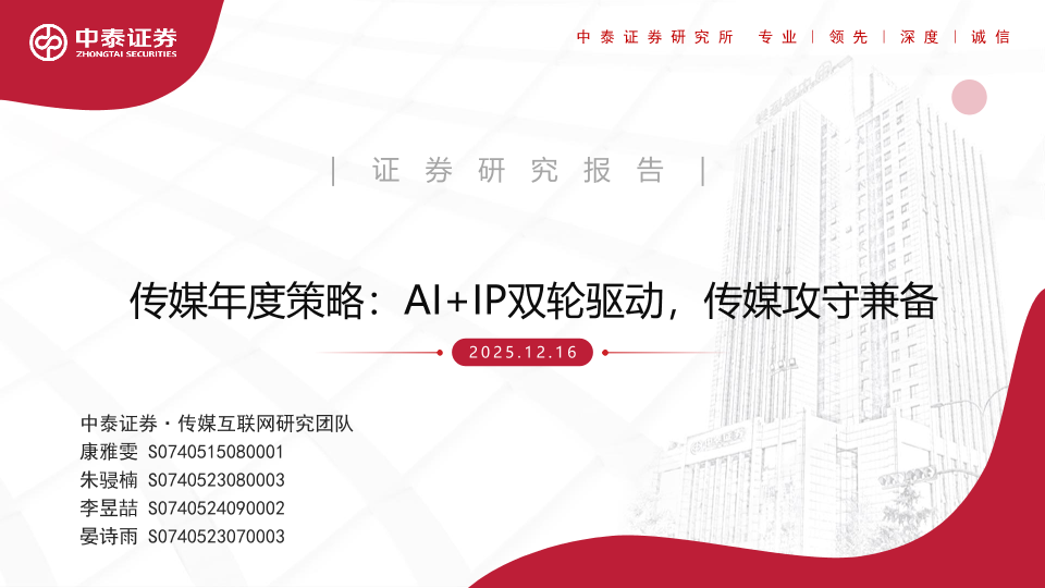 【中泰证券】【202512】传媒年度策略:AI+IP双轮驱动,传媒攻守兼备-91页