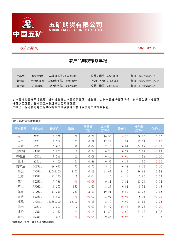 【五矿期货】【202509】五矿期货·农产品期权策略早报-250912(45页)-45页