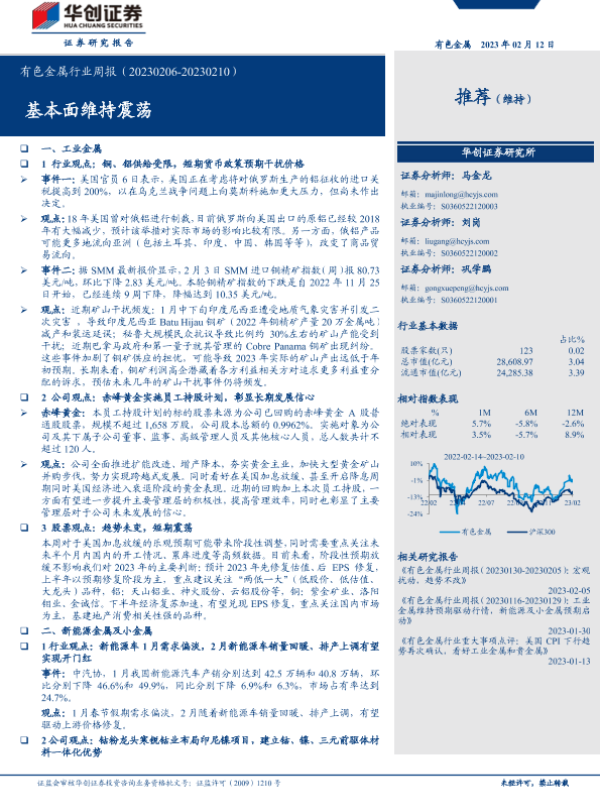 【华创证券】【20230212】有色金属行业周报:基本面维持震荡-20页