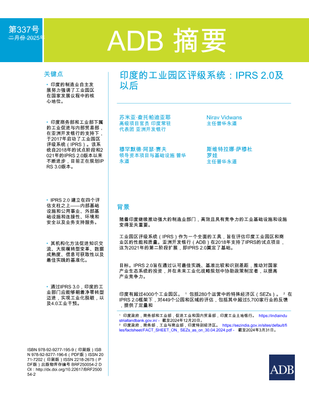 【亚洲开发银行&普华永道】【2023】印度工业园区评级体系的演变 试点阶段-10页