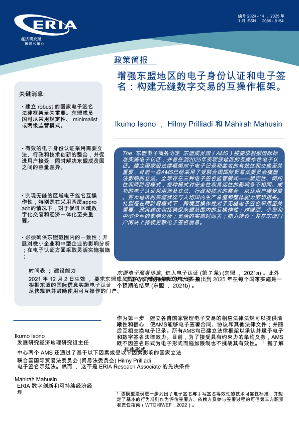 【东盟与东亚经济研究学院】【2026】增强东盟地区的电子身份认证和电子签名 构建无缝数字交易的互操作框架。-4页