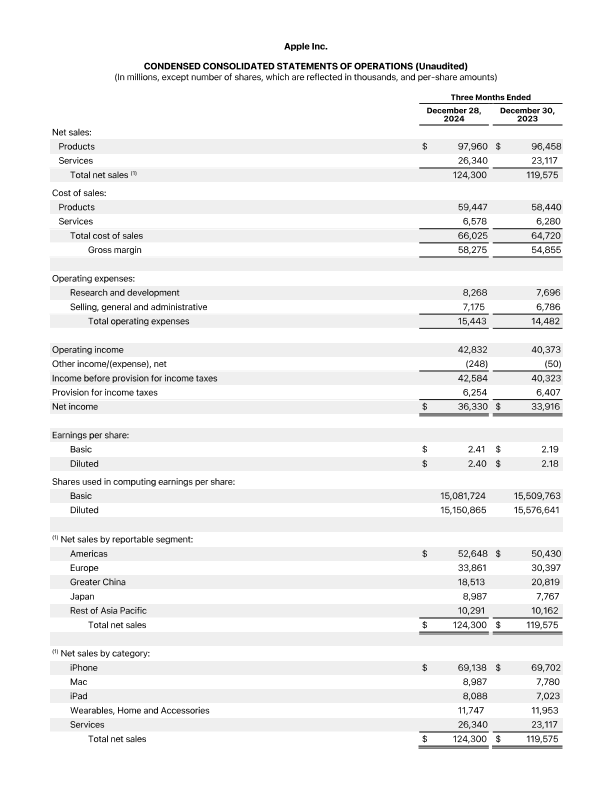 【Apple Inc.】【202412】CONDENSED CONSOLIDATED STATEMENTS OF OPERATIONS, BALANCE SHEETS, AND CASH FLOWS-3页