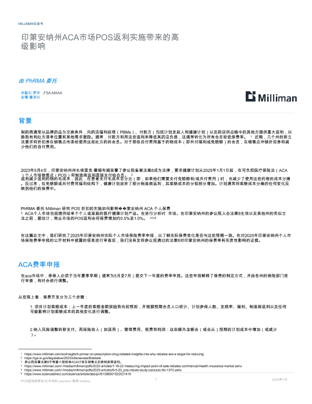 【Milliman】【2025】印第安纳州ACA市场POS返利实施带来的高级影响-4页