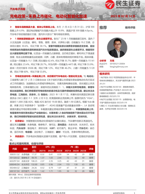【民生证券】【20230214】汽车电子行业月报:充电政策+禾赛上市催化,电动化智能化加速-20页
