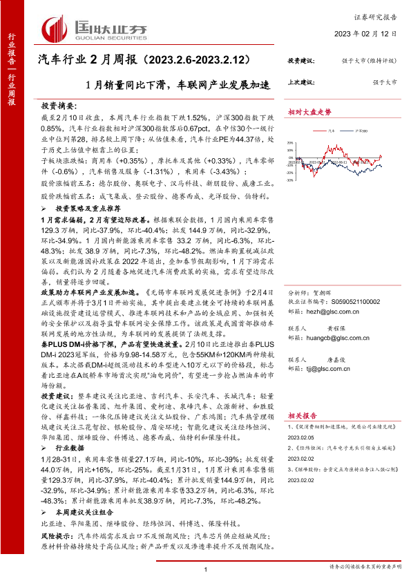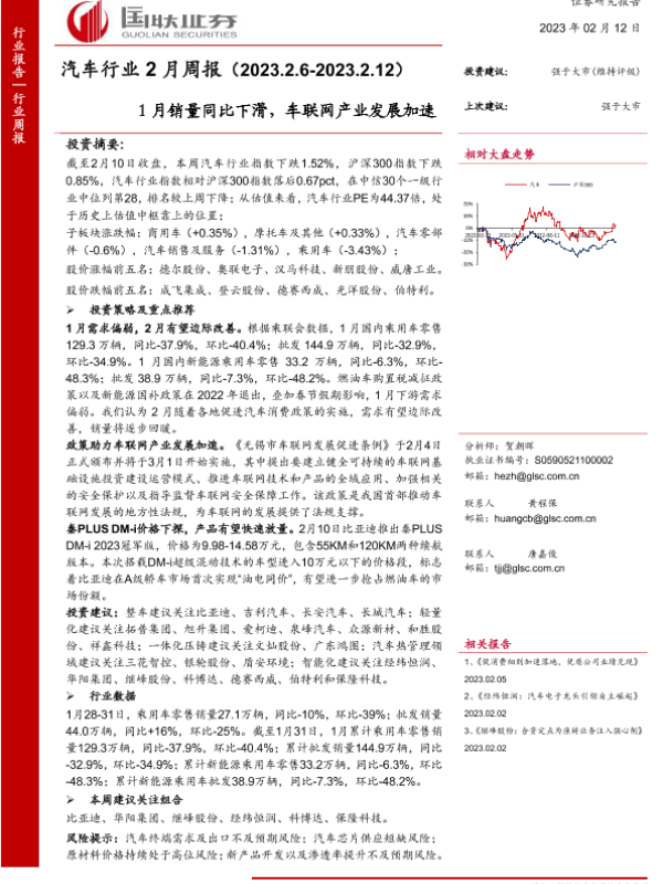 【国联证券】【20230212】汽车行业2月周报:1月销量同比下滑,车联网产业发展加速-20页