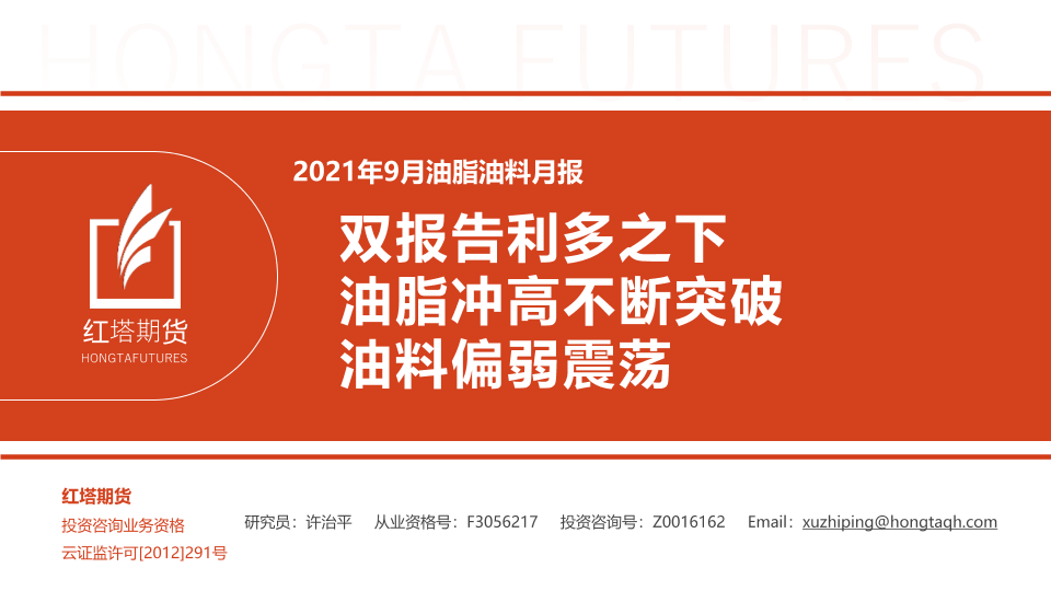 【红塔期货】【20210910】2021年9月油脂油料月报:双报告利多之下,油脂冲高不断突破,油料偏弱震荡-17页