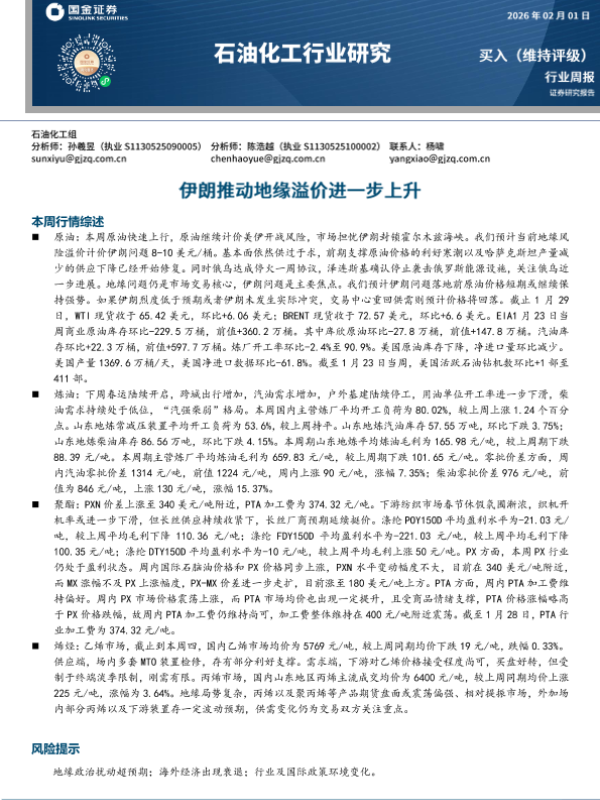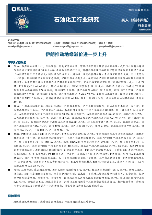【国金证券SINOLINK SECURITIES】【202401】石油化工行业研究:伊朗推动地缘溢价进一步上升-17页