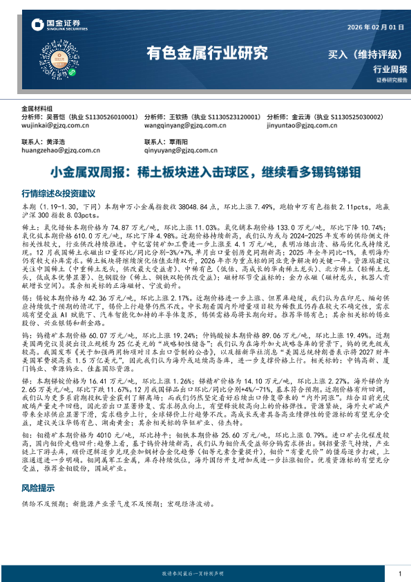 【国金证券】【202602】有色金属行业小金属双周报:稀土板块进入击球区,继续看多锡钨锑钼-14页