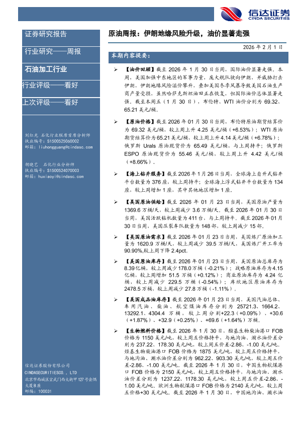 【信达证券】【202602】原油周报:伊朗地缘风险升级,油价显著走强-29页