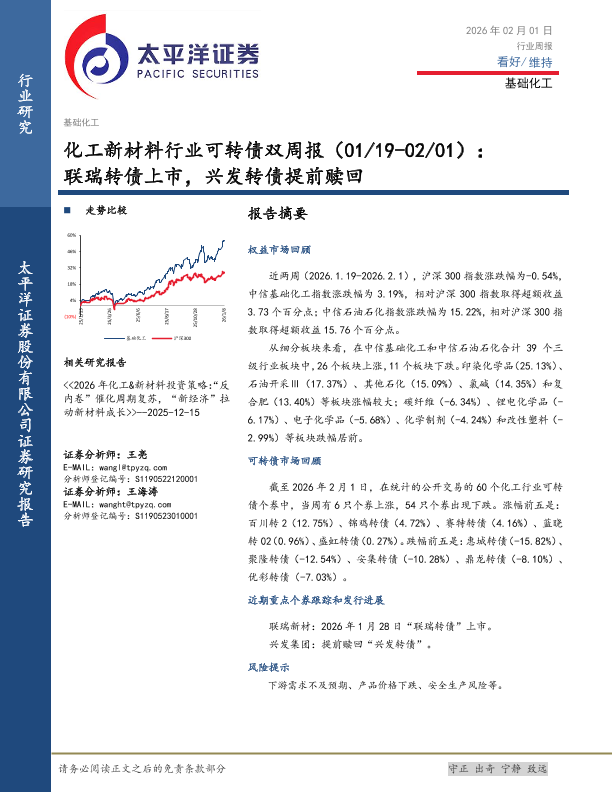 【太平洋证券】【202602】化工新材料行业可转债双周报(01/19-02/01):联瑞转债上市,兴发转债提前赎回-20页