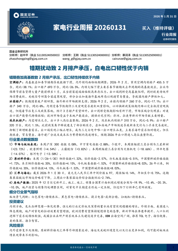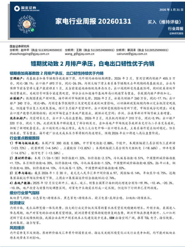 【国金证券】【202601】错期扰动致2月排产承压,白电出口韧性优于内销-10页