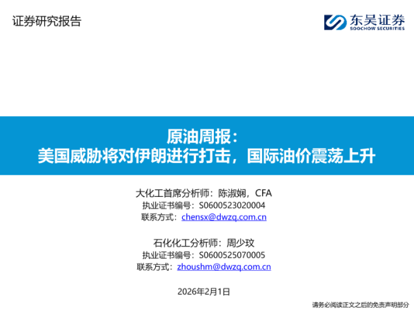 【东吴证券】【202602】原油周报:美国威胁将对伊朗进行打击,国际油价震荡上升-59页